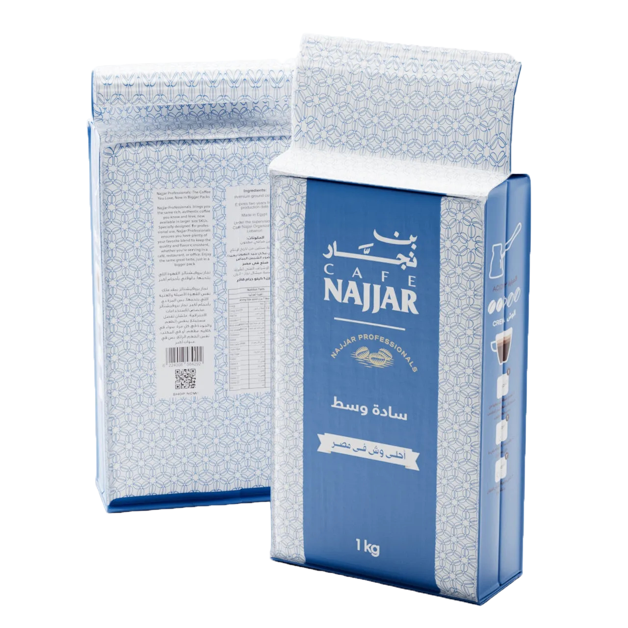 في ناس ما بتتمزجش غير لما تشرب الفنجان الصبح عالقهوة اللي متعودين يروحوها كل يوم، علشان كدة عملنا عائلة بروفيشنال مخصوص علشان تناسب استهلاك القهاوي في كل حتة، ودلوقتي كمان عملنا كمية تكفي البيت بوزن 225 جرام علشان اللي بيحب قعدة البيت، ومش بس الوزن إحنا كمان بنقدم كل أنواع التحميص من الفاتح لحد الغامق، وده علشان مزاجك يهمنا.